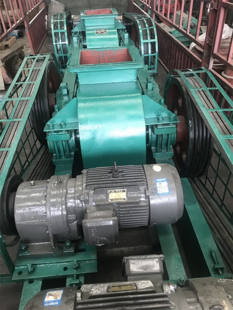 當(dāng)物料進(jìn)入機(jī)器的破碎腔以后,物料受到轉(zhuǎn)動(dòng)輥軸的嚙力作用,使物料***通過兩輥之間,同時(shí)受到輥軸的擠軋和剪磨,物料即開始碎裂,碎裂后的小顆粒沿著輥?zhàn)有D(zhuǎn)的切線,通過兩輥軸的間隙,向機(jī)器下方拋出,超過間隙的大顆粒物料,繼續(xù)被破碎成小顆粒排出。