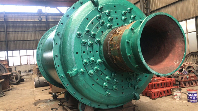 溢流型球磨機筒體用厚度15-36mm的鋼板焊接而成,在筒體的兩端焊有鑄鋼制造的法蘭盤,用螺栓將端蓋2和3與法蘭盤連接在一起,二者須精密加工和配合,因為承載磨礦機質(zhì)量的中空軸頸焊在端蓋上。在筒體上開有1-2個人孔,供檢修和更換襯板用。筒體和端蓋內(nèi)部敷設(shè)有襯板5。端蓋上的中空軸頸支承在主軸承4上。主軸承常用的是滑動軸承,其直徑很大,但長度很短。軸瓦用巴氏合金澆鑄,與一般滑動軸承不同之處在于僅僅下半部有軸瓦。整個軸承除軸瓦用巴氏金澆鑄外,其余用鑄鐵制成。由于球磨機的跨度和載荷很大,將發(fā)生一定程度的撓曲,而且制造和裝配的誤差也難以保證準確的同心度,因此主軸承制成自動調(diào)心滑動軸承,為防止軸瓦轉(zhuǎn)位過大而從軸承座中滑出,在軸承座與軸瓦的球面***放一圓柱銷釘。